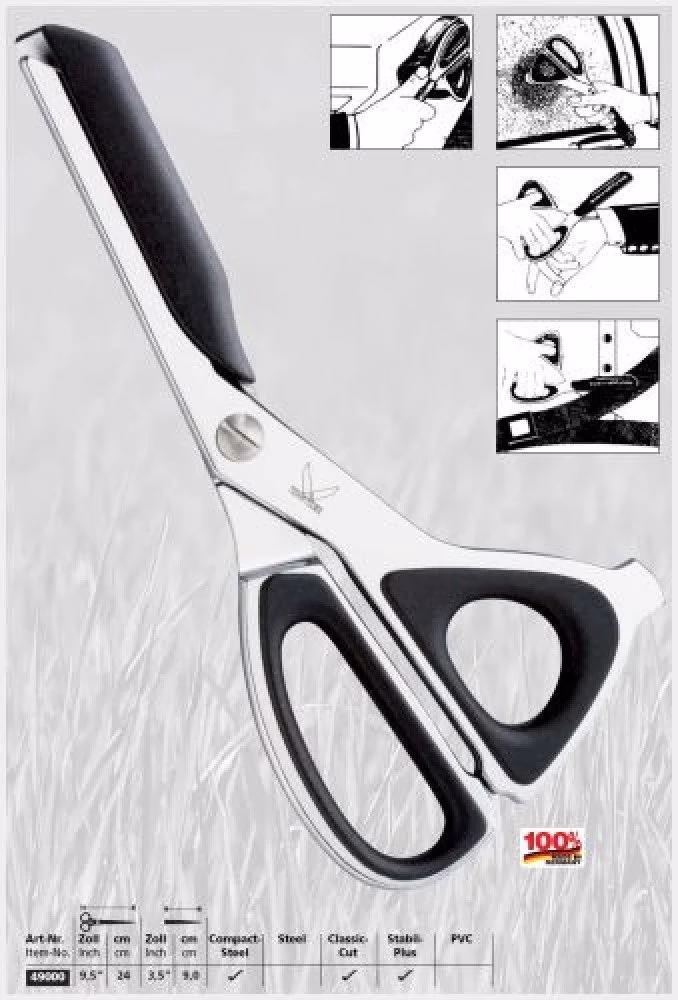 Kretzer SPIRALE SAFETY pelastussakset 9,5” / 24 cm on monitoiminen turvatyökalu hätätilanteisiin. Sakset on suunniteltu nopeaan ja tehokkaaseen toimintaan tilanteissa, joissa jokainen sekunti ratkaisee. Saksien integroitu lasinrikkoja mahdollistaa auton ikkunan nopean rikkomisen hätätilanteessa, kun taas vahvat terät leikkaavat turvavyöt, nahan, kankaat ja muut materiaalit vaivattomasti. Tämä tekee työkalusta erinomaisen valinnan autoilijoille, pelastushenkilöstölle ja turvallisuustietoisille käyttäjille.