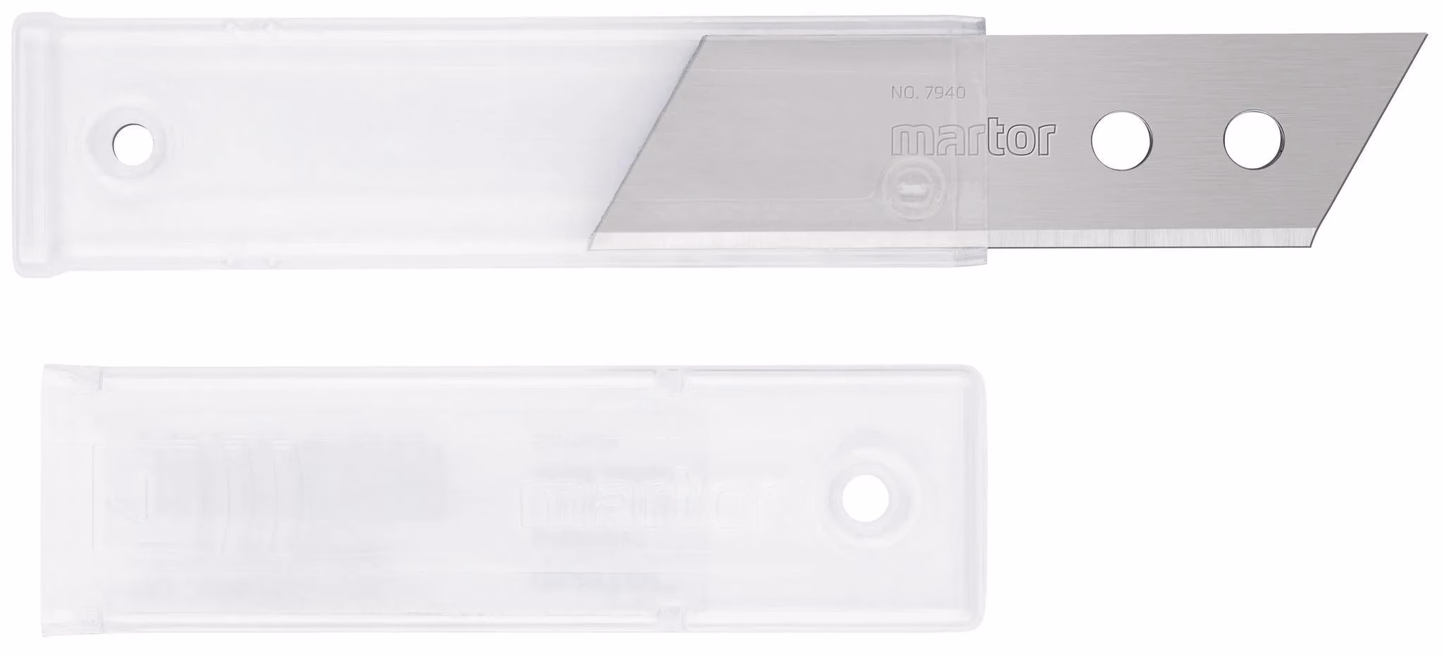 Styropor-terä MARTOR 7940  on korkealaatuinen teräksinen vaihtoterä, joka on suunniteltu tarkkaan ja tehokkaaseen leikkaamiseen. Yksipuolinen leikkuureuna tarjoaa hallitun leikkaustuloksen ja soveltuu erityisesti eristemateriaalien, kuten styroksin, käsittelyyn.