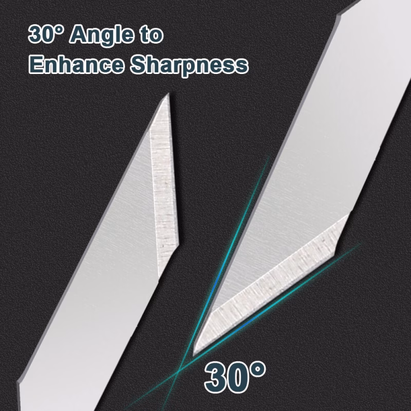 Kestävä ja tarkka: Tarjoaa erinomaista kovuutta, terän pysyvyyttä ja terävyyttä. Kestävien materiaalien ansiosta nämä terät tarjoavat tarkkaa ja pitkäkestoista suorituskykyä kaikissa leikkaustehtävissäsi.